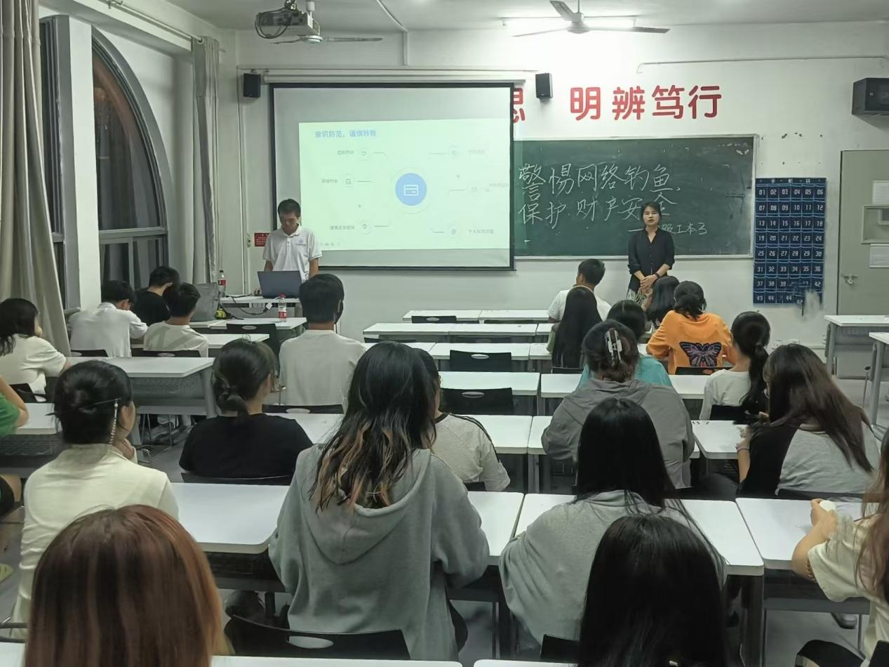 大二各班级围绕“警惕网络钓鱼,保护财产安全”主题进行展开,班长向同学们科普了网络诈骗的常见手段以及预防个人信息泄露的方法来提醒大家要谨防电信网络诈骗,保护好个人信息与个人财产。通过本次班会,同学们更加深入地了解了电信网络诈骗的危害和防范技巧,提升了自我保护能力。