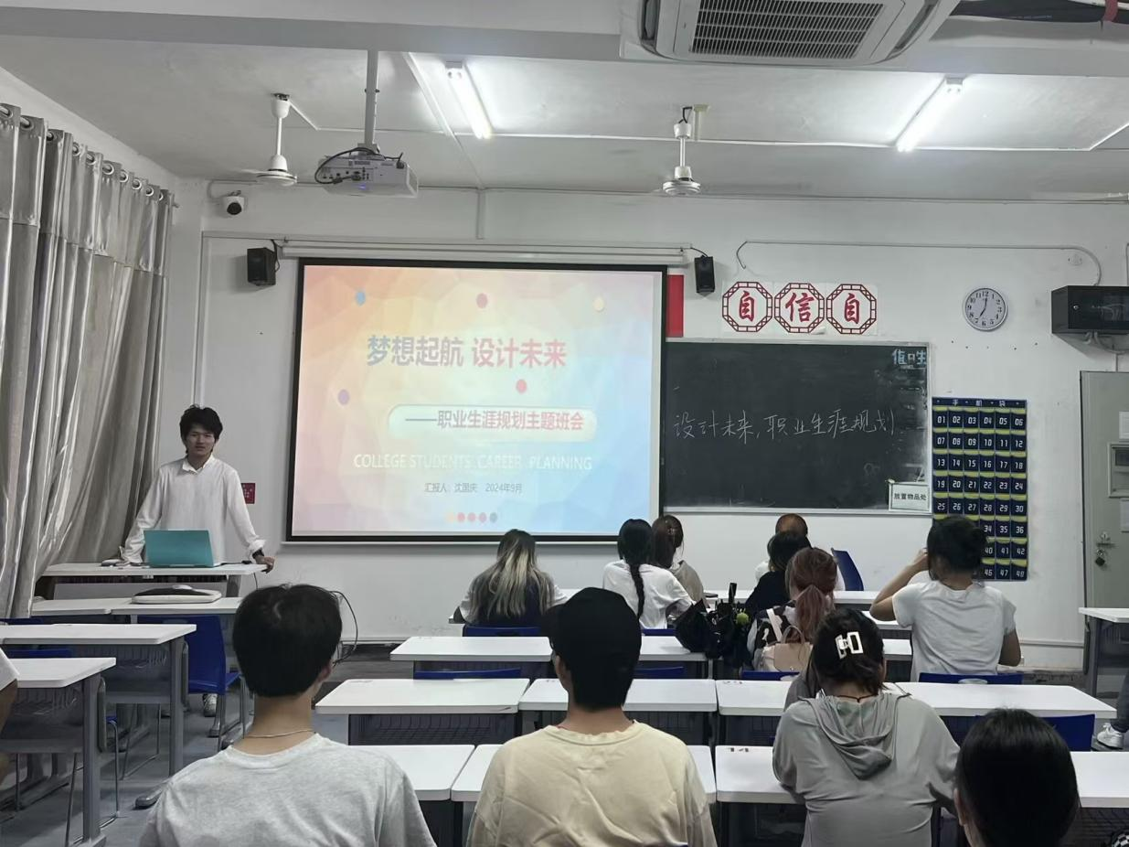 大三各班级以“梦想起航,设计未来——职业生涯规划”为主题召开班会。班长们提出“职业生涯规划=知己+知彼+抉择+规划”公式来概括职业规划,引导班会围绕“知己”、“了解社会大环境”、“回顾与展望”三方面进行。在班长的引领下,同学们逐步开始制定自己的职业生涯规划。本次班会为同学们提供了宝贵的指导和帮助,有利于引导他们树立正确的职业观念,明确个人职业目标,并为未来的职业发展奠定坚实基础。