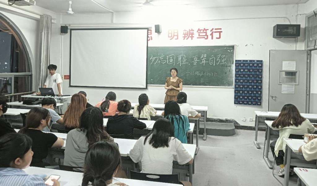 大二各班级召开了“勿忘国耻,吾辈自强”主题班会。班长们通过PPT和同学们共同回顾了“九一八事变”那段屈辱的历史。这一事件警示大家,国家安全和领土完整对人民幸福生活至关重要,不仅让同学们对“九一八事变”有了更深刻的认识,也激发了大家的爱国热情和责任感。