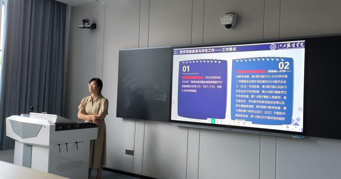 会议第三项内容,廖师琴副院长对本学期主要工作进行部署,包括听课评课活动、科研活动、实验实训场所规范性等。