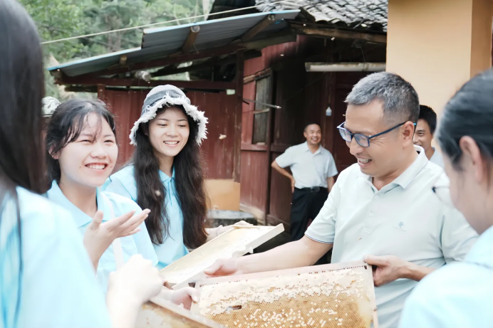 7月4日,团队成员们参观了幽居村的蜂蜜加工厂和蜂蜜养殖基地。通过实地了解当地蜂蜜产业的发展情况,大家深刻认识到了乡村振兴的重要性以及特色产业在推动地方经济发展中的关键作用。