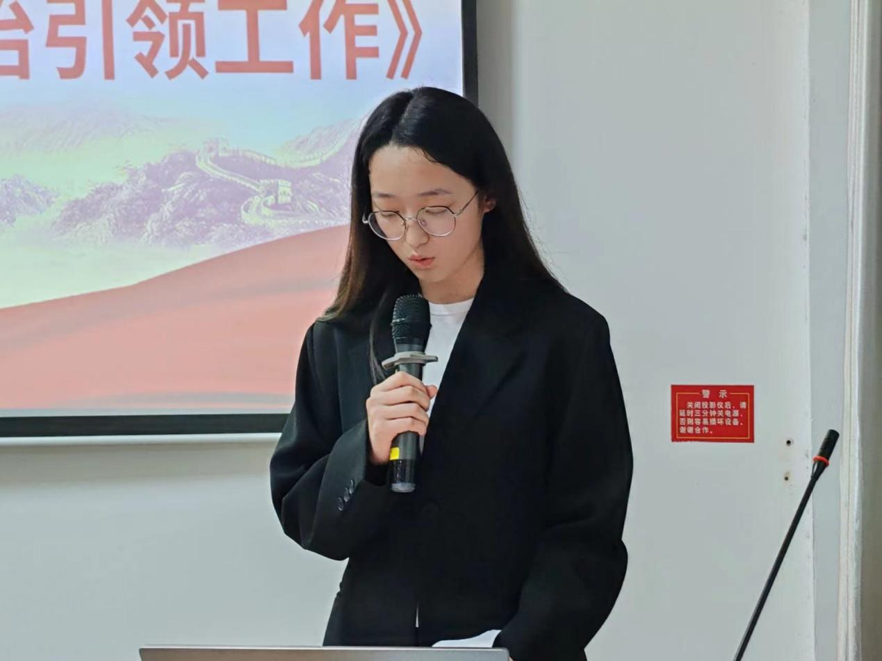 会议第四项,由分团委副书记王舒讲话。王舒对各部门的辛苦付出给予了肯定,并希望全体成员能够再接再厉,更好地完成接下来的工作。