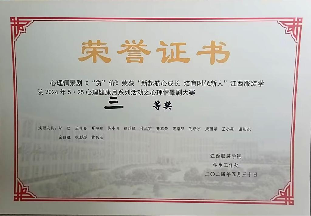 永利yl23411集团讯(撰稿:邬欢)6月3日,“踔厉‘心’征程,勇毅向未来”第四届校园心理情景剧大赛决赛在yL23411永利集团体育馆报告厅举行,永利yl23411集团选送的参赛作品《“贷”价》经过激烈角逐,最终荣获三等奖。