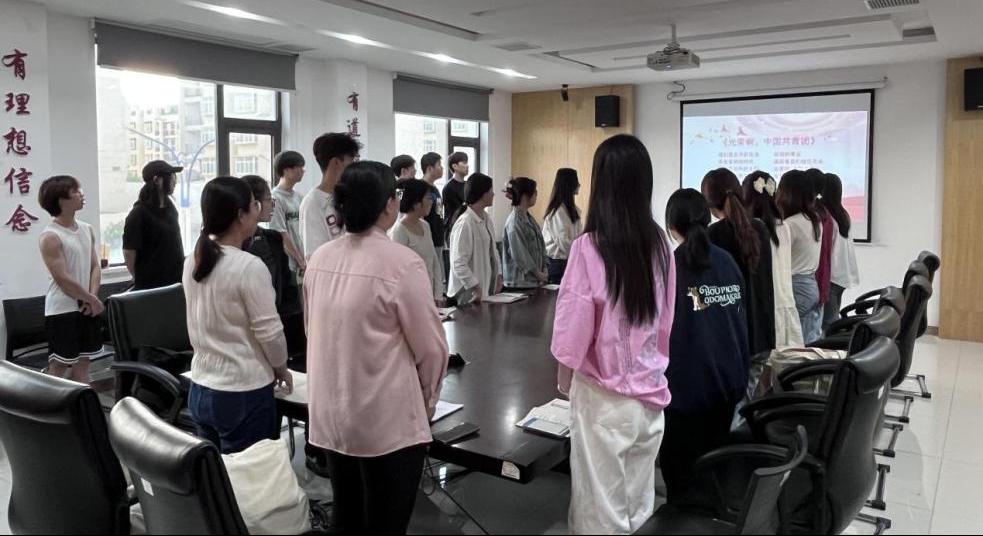 会议第一项,全体起立奏唱《光荣啊,中国共青团》。