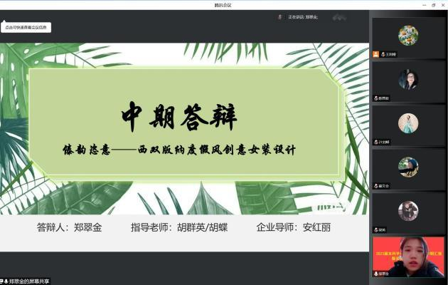 本次中期答辩有服装设计与工程、服装设计与工艺教育、纺织工程三个专业,根据不同专业特点分别抽调教师组成 23 个答辩评审小组。为保证答辩工作的顺利开展,由各答辩小组秘书建立 QQ 群,提前收集各组毕业生的中期材料及答辩 PPT,告知毕业生答辩的流程与环节。收集的中期汇报材料及 PPT 由各组评审教师提前审阅,方便记录各毕业生的毕业设计进展。