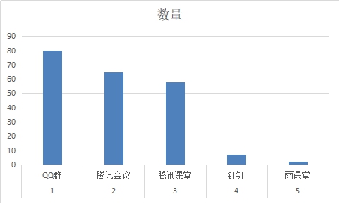 4.本周在线教学平台使用情况:扣扣群79堂次,腾讯会议65堂次,腾讯课堂57堂次,钉钉7堂次,雨课堂2堂次,具体分布如图2: