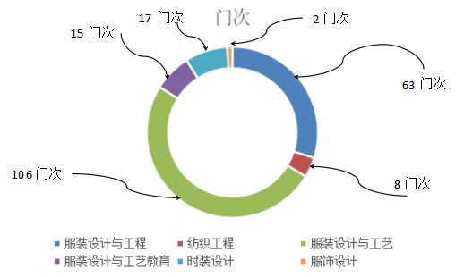 2.本周我院共承担了211门次课程的在线教学,其中:服装设计与工艺106门次,服装设计与工程63门次,服装设计与工艺教育15门次,时装设计17门次,纺织工程8门次,服饰设计2门次,具体分布如图1: