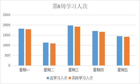 图5 第8周应在线学习人次与实际人次