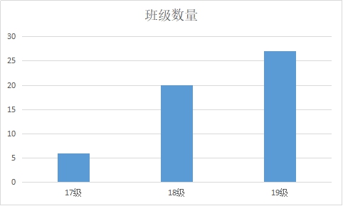 1. 本周共计有53个班级参与学习,其中:17级有6个班级,18级有20个班级,19级有27个班级,各年级班级数量如图1:
