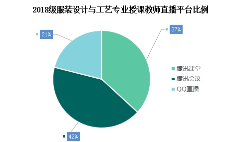 5、本周主要汇总服装设计与工艺专业共8周时间在线课程质量分析,服装设计与工艺专业在线上课学生共618人,线上开出课程共有14 门,目前该专业在校生有2个年级,授课教师2018级19人,2019级16人,共有35人。教师根据课程特点和教学目标,依托超星平台、服装学堂、学堂在线和学校网络教学平台等,有效利用腾讯课堂、腾讯会议、QQ 直播等软件,通过直播教学、录播教学、线上研讨、学生自主学习等多种形式开展网络教学。具体如下: