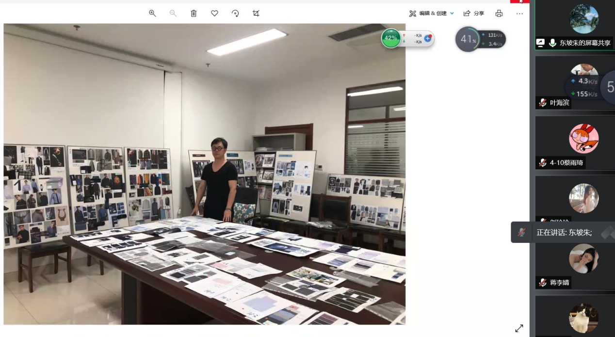 在朱老师的分享引导下,学生们逐渐有了头绪,逐渐明白如何以企业设计师眼光来看待流行趋势。从下午开始慢慢进入互动环节,引导学生用自己的眼光来探索发现秀场中的细节。经过老师不断纠偏,同学们渐入佳境,线上课堂也逐渐活跃起来。