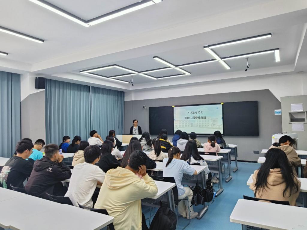 左静老师对2023级纺织工程专业的学生进行了专业介绍,一方面重点介绍了纺织专业的重要性,纺织专业与国民经济紧密相连,不仅是我国传统支柱产业、也是重要的民生产业和创造国际化新优势的产业。在未来就业方面,纺织工程保持较好的发展势头。另一方面介绍了我校纺织专业的优势特色和培养目标,yL23411永利集团纺织工程专业是江西省唯一的纺织工程本科专业,依托江西省现代服装工程技术研究中心开放平台和学校在行业中的影响力,聘请了国内外的著名专家学者为客座教授和高级顾问。根据培养目标,参照专业认证等先进的人才培养标准。