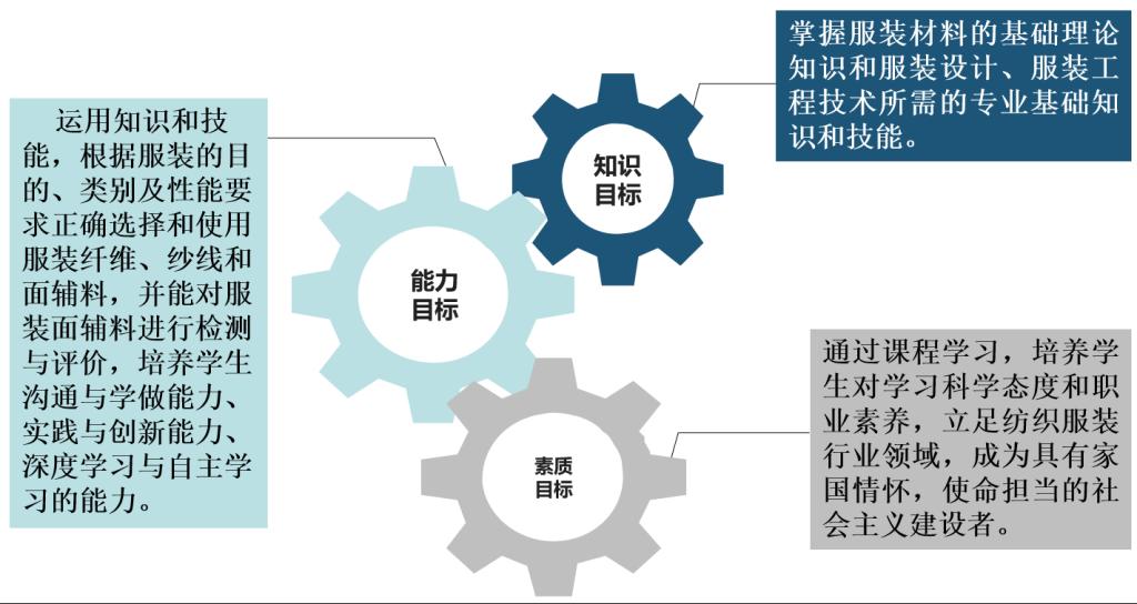 本课程坚持立德树人,通过本课程的学习,使学生掌握服装材料的基础理论知识和服装设计、服装工程技术所需的专业基础知识和技能,能够根据服装的品类及性能要求正确选择和创新服装面料,增强学生的实践动手能力,不断提高运用知识分析问题、解决问题的能力、沟通能力和团队协作能力,培养学生追求卓越、精益求精的科学态度,具备良好的职业道德、社会责任感,提高文化自信,为今后学习和今后工作打下基础。