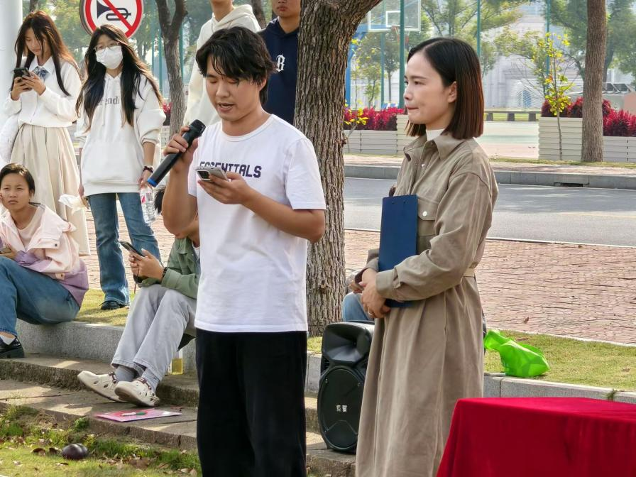 大赛第四项,由裁判员代表吴帆宣读比赛规则。此次比赛形式为小组竞技。6人一组,分为男女两组,进行比拼,通过传球、接球、运球和击球射门等技术得分,赢得比赛胜利。希望每位参赛选手能够遵守比赛规则,发扬体育精神,祝江服学子们能够发挥自己的实力,取得满意的成绩。