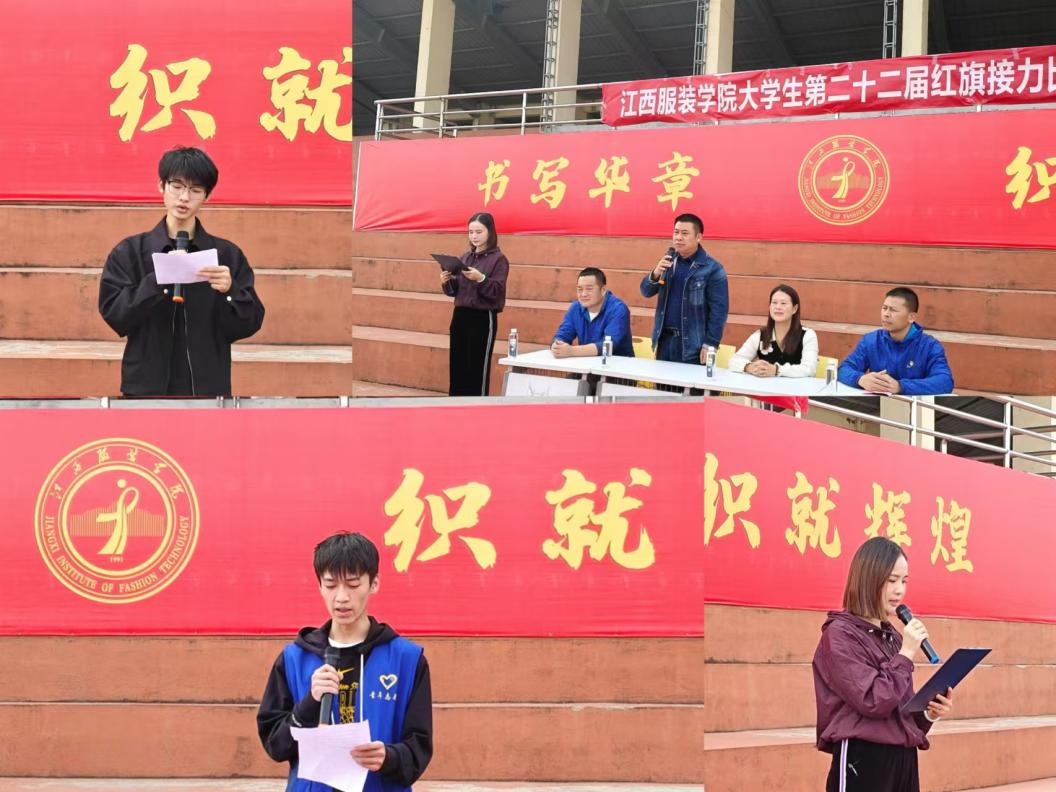 参赛选手以学院为单位,每组三男三女。志愿者和裁判员带领运动员到达接力场地准备接力。红旗接力赛起点是田径场,途径罗马广场—清河区—润华园-服饰文化陈列馆(798)―图书馆门口-西区主干道-招生办-主教楼花坛,最后返回至田径场。随着一声枪响,接力赛正式开始,加油呐喊声一浪盖过一浪。在赛场上,我们看见了运动员努力拼搏的身影,也见到了属于青年学子的热血。比赛过程中,运动员们团结协作,拥有强的集体荣誉感。加油声不断,点燃青春活力。