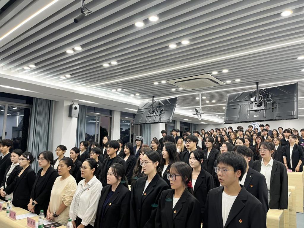 会议第一项,全体起立齐唱《光荣啊,中国共青团》。