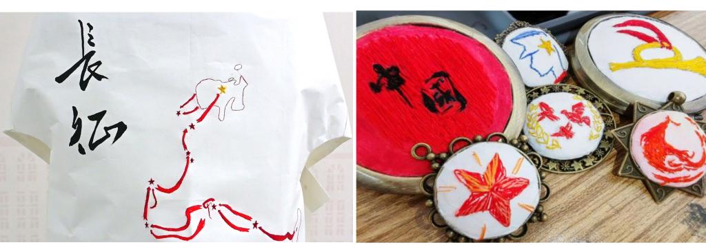新四军作为中国共产党领导的人民军队,在抗日战争中发挥了重要作用。赣绣,作为非物质文化遗产,承载着丰富的历史文化内涵。本幅作品以新四军集结为切入点,选取新四军时期的口号、臂章、勋章,结合赣绣技艺,充分发挥服装设计专业特长,以一针一线绣绘抗日战争历史,表达了对抗击日寇、保卫家园的革命先烈的无限敬佩和缅怀之情。