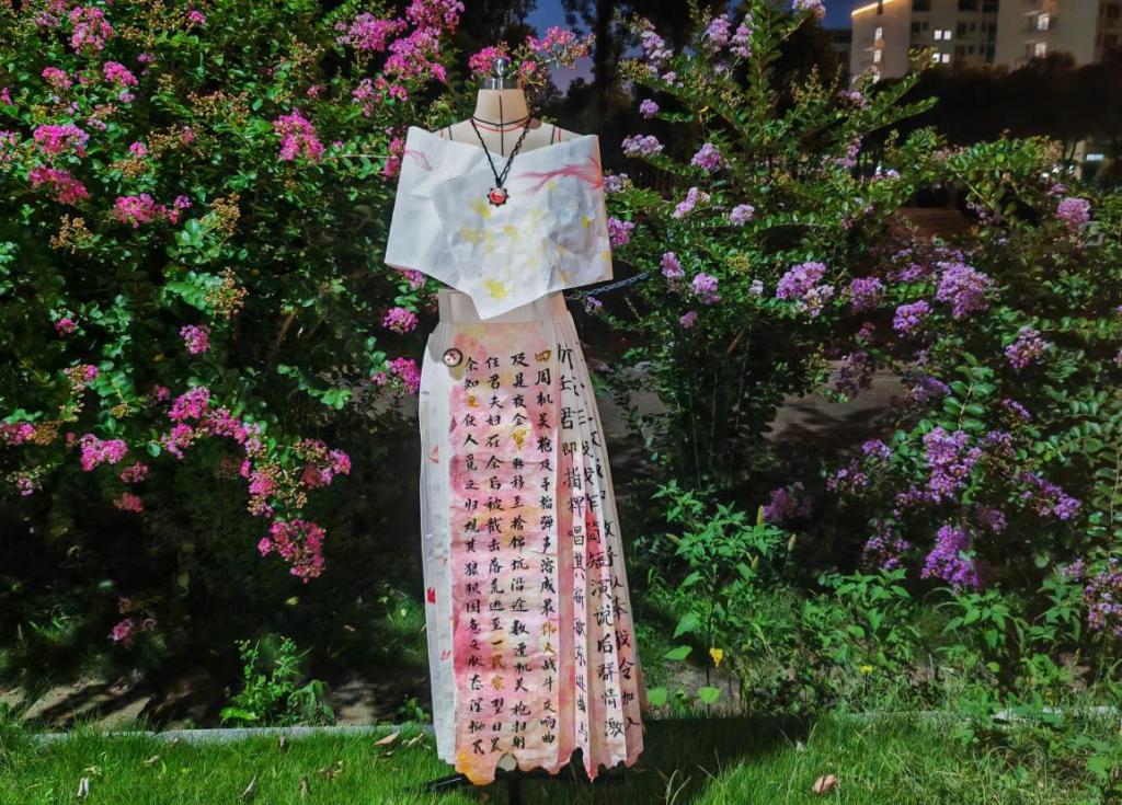 团队成员通过实地参观南昌新四军军部旧址陈列馆,结合陈列文物与历史事件创作了系列作品。作品以红色文化为据,宣纸为载体,非遗宣纸刺绣技艺为手段,充分发挥服装专业特长。作品包含服饰(马面裙、新中式马甲、交领中衣),饰品(两个镜子、两枚胸针、两个吊坠)。团队希望能够通过作品的展示让大家感受到伟大的革命精神,同时让更多人知道江西非遗宣纸刺绣,让人们在感受服饰魅力的同时,传承红色文化。
