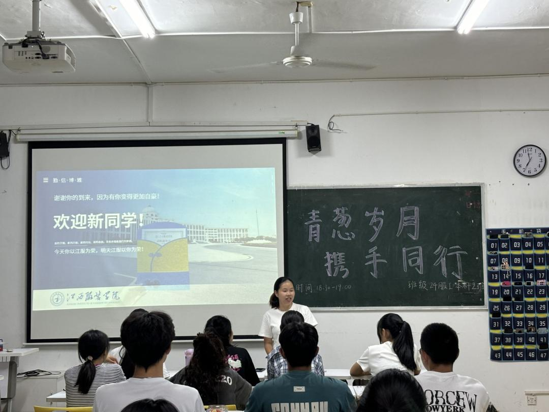 大一年级召开了“青葱岁月,携手同行”的主题班会。班主任通过与同学们之间的畅聊,强调了步入大学的四个要点:一、尊重他人,宽爱他人,学会感恩;二、独立生活,学习自律,加强运动;三、重视学习,注重规划;四、做好安全措施,保护自身安全。大一生活在同学们眼中是一个充满机遇亦或是一个挑战的阶段,于当下的我们需:秉承“勤、信、博、雅”之校训,传承“明德弘毅、崇艺尚美、敬业奉献、追求卓越”的江服精神吧!