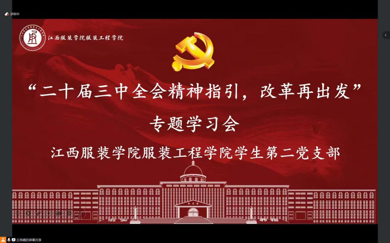 永利yl23411集团讯(撰稿:沈国庆)8月28日下午3:00,永利yl23411集团学生第二党支部以腾讯会议形式召开了“二十届三中全会精神”专题学习会,服装工程学院学生第二党支部全体党员参加了学习会。