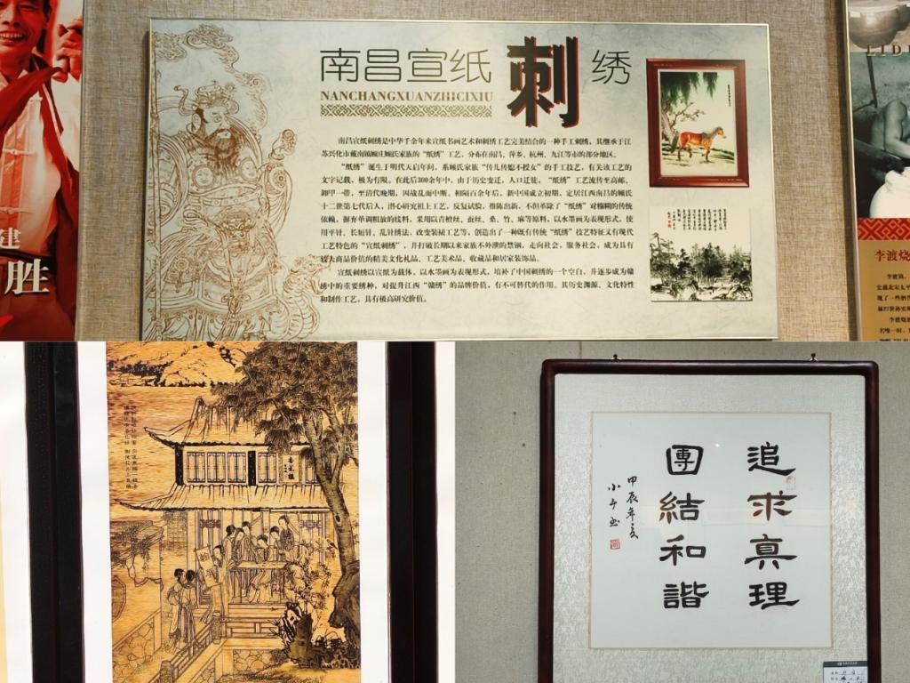 下午,“寻裳”中华文化传承团探访了位于南昌市西湖区的绳金塔历史文化街区非遗十二坊,在这里的非遗展馆内,涵盖了国家级至省级的多项非遗项目,团队成员将主要目光放在了精美的宣纸刺绣作品上。