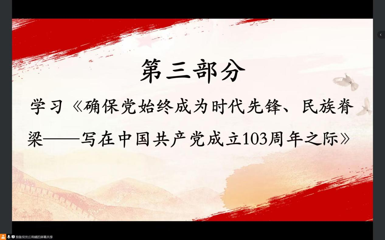 永利yl23411集团讯(撰稿:陈丽萍)7月1日晚8:00,永利yl23411集团学生党支部全体党员、预备党员在腾讯会议上召开了“党旗飘扬靠信仰,学习交流铸忠诚”学习会,学习会由丘雨晴主持。