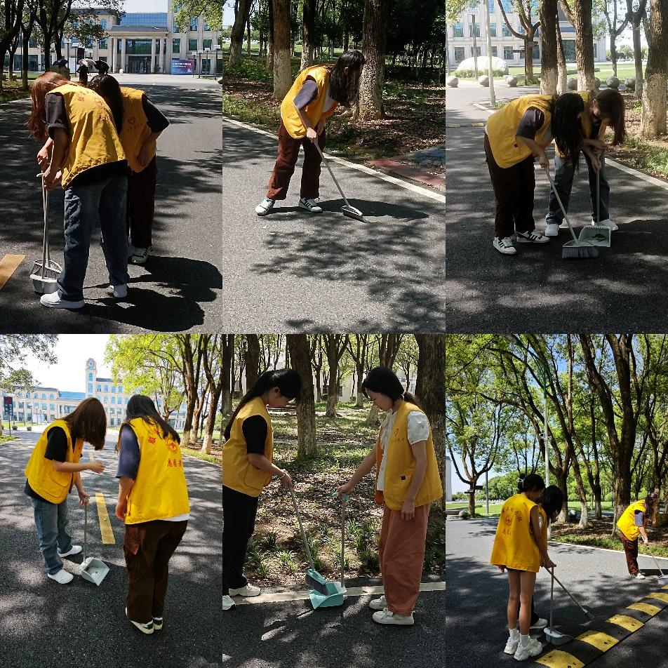 活动开始后,志愿者们分为多个两人小组,一人手持扫把,一人拿簸箕。他们分工明确,一些人负责清理草坪里面的废纸屑,一些人负责清理地面上的垃圾与落叶。经过志愿者们的悉心打扫,包干区变得焕然一新。