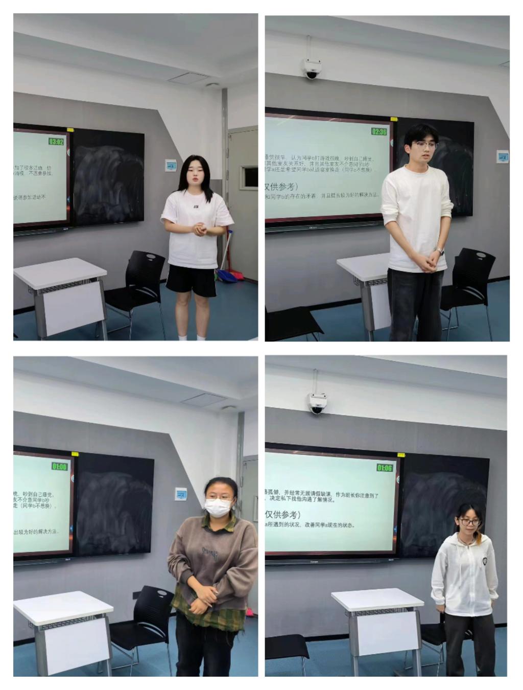 比赛伊始,各班级班长按照抽签顺序依次上场,根据所给的题目背景进行作答。