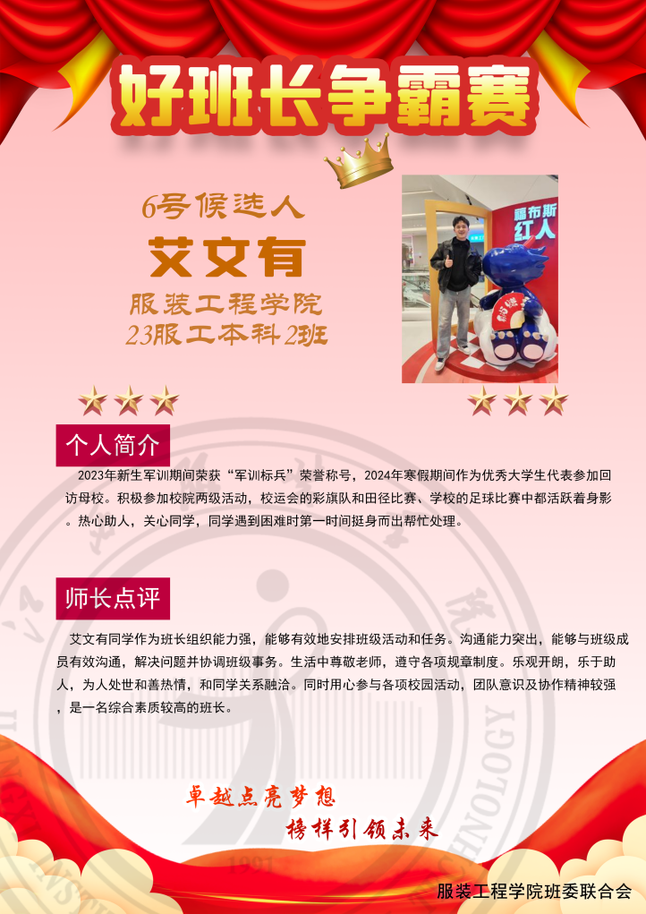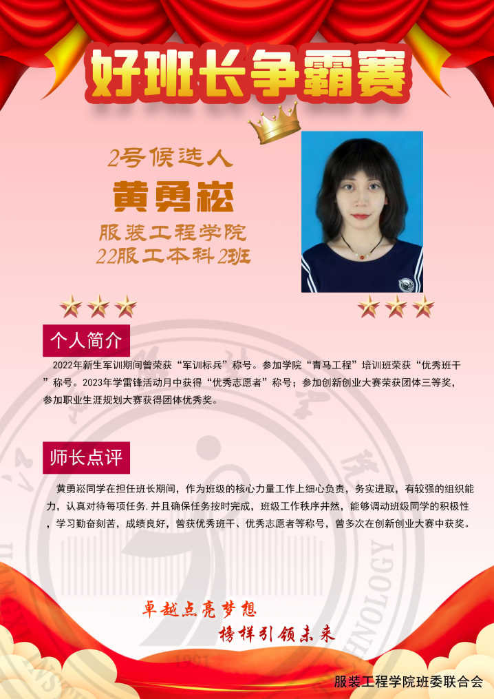 让我们领略永利yl23411集团十位好班长候选人的魅力和风采吧。票数获得最多的班长,将成为永利yl23411集团的最佳人气班长。为了支持我们的好班长,请大家投上宝贵的一票吧!