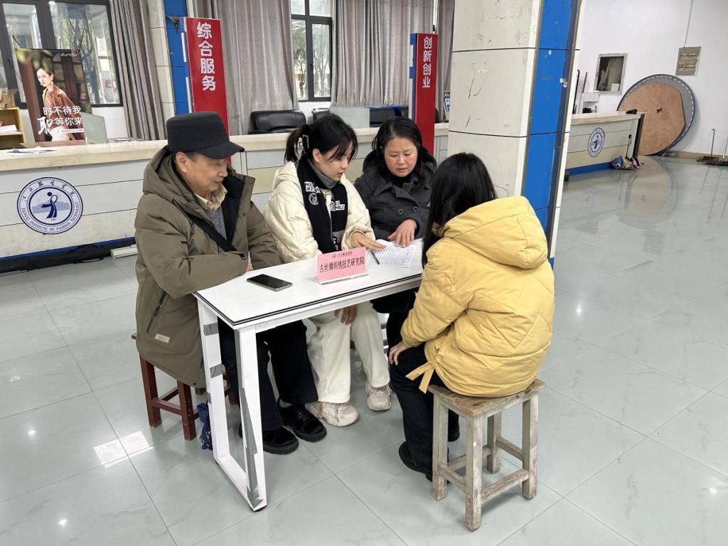 古丝绸织绣技艺研究院讯(撰稿:陈岑)为了使大学生学习传统文化知识、体验传统文化活动、弘扬传统文化价值,3月5日下午2:00,古丝绸织绣技艺研究院举办了2024年春季学期勤工俭学招聘会,本次招聘吸引了众多热爱传统文化的学子前来参加,展现了他们对古丝绸织绣技艺的热情与追求,古丝绸织绣技艺研究院院长、中国织锦大师、古丝绸技艺资深专家胡德银,古丝绸织绣技艺研究院副院长胡蝶主持了招聘会的面试。