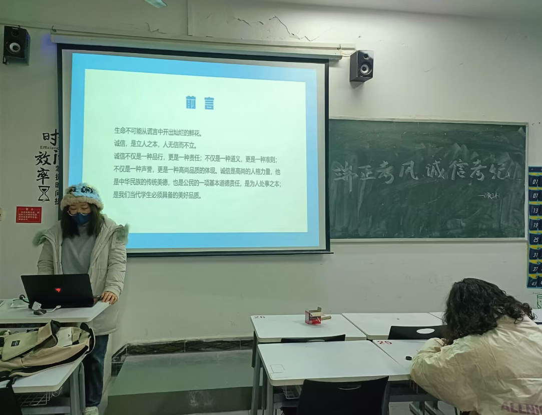 21级各班级围绕“端正考风、诚信考纪”主题展开。主持人通过讲述一个诚信小故事来让同学们知道诚信的重要性。为了维护公平、公正的考试环境,每个人都有责任共同努力,端正考风,保持诚信。诚信是学术道德的基石,也是立身处世的根本。只有在公平的竞争中,大家的努力和付出才能得到应有的回报。