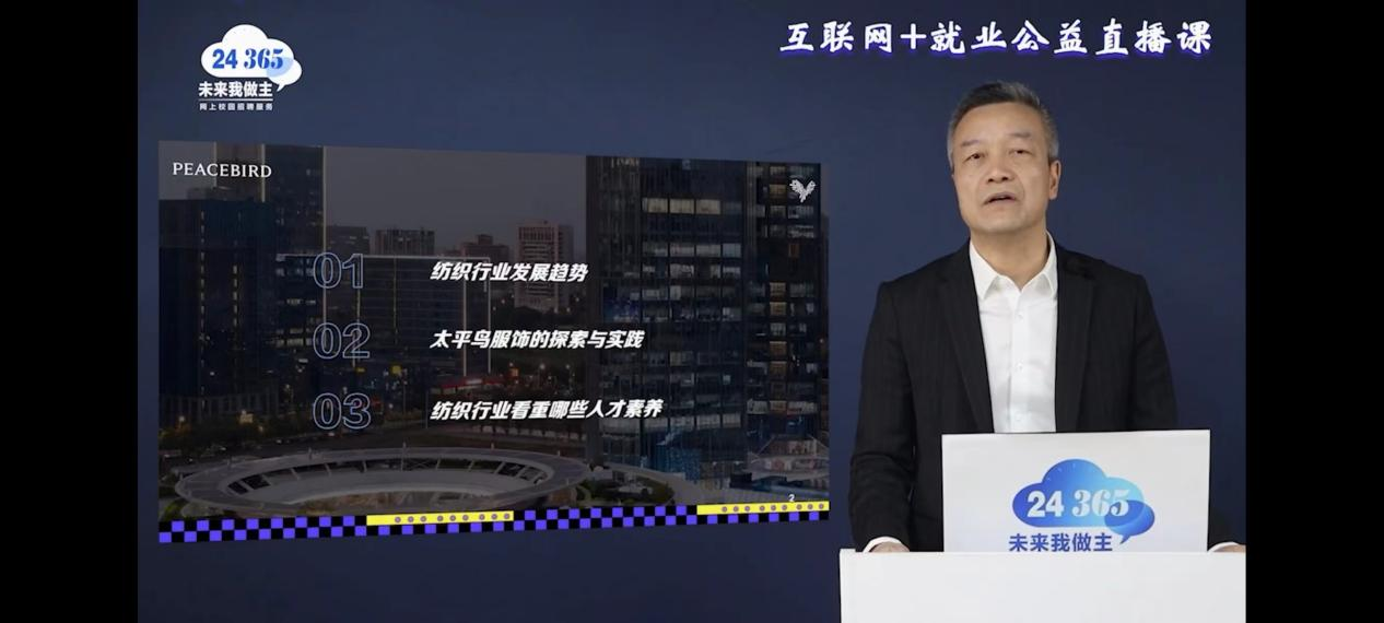 欧利民以“纺织行业发展趋势”“太平鸟服饰探索与实践”“纺织行业看中哪些人才素养”三个方面进行了讲解,分析了纺织业就业发展趋势,介绍了太平鸟纺织行业发展就业需求,帮助纺织类高校毕业生了解纺织业就业形势,把握就业机会。