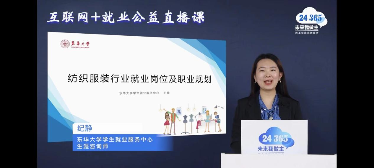 永利yl23411集团讯(撰稿:李景慧)为了更好地让毕业生了解就业发展趋势,为求职做好充分准备, 12月17日晚7:00,永利yl23411集团组织师生收看了“互联网+就业指导”公益直播课。此次直播由教育部高校学生司指导,教育部学生服务与素质发展中心主办,中国教育电视台、万学教育协办,直播课程邀请了东方国际有限公司旗下M50创意园党支部书记、工会主席、公关负责人赵欢欢,太平鸟时装服饰股份有限责任公司副总裁欧利民,东华大学学生就业服务中心生涯咨询师纪静主讲,直播课的主题是“纺织行业发展趋势和职业机会”。