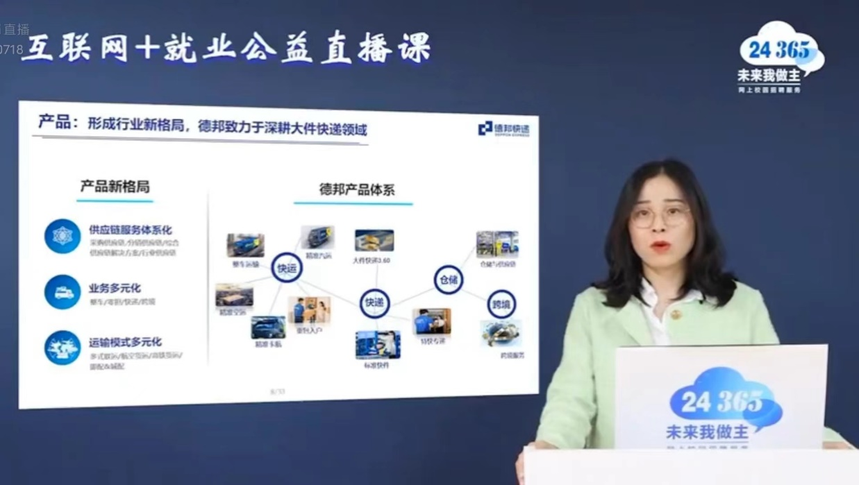 本次直播课邀请了德邦快递人才发展部高级总监饶文琴女士和京东物流校招负责人李鼎先生担任主讲人。主讲人先以“物流快递行业发展趋势和职业机会”为主题引入此次课程,使即将面临就业选择的同学们更好地了解物流快递行业的发展趋势和就业机会,以便更好地抓住新机遇、迈开新步伐,找到更加适合自己的就业岗位。