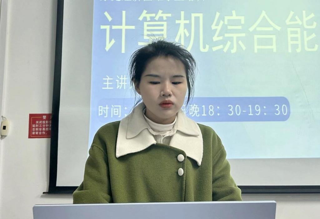 此次培训的课程内容主要分为两部分,一是计算机的基本操作,二是计算机办公软件的使用。江青燕首先对计算机基础知识进行了详细的讲解,同学们对计算机的工作原理有了更加全面的了解。为了使2023级新生能尽快地适应学校生活,江青燕针对Microsoft Office办公系统中有关Word、Excel和PowerPoint等软件进行了深入细致的讲解。通过江青燕细心地讲解,大家基本熟悉了这些办公软件的基本操作。