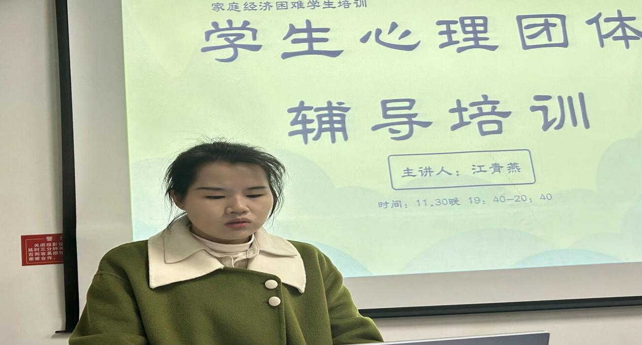永利yl23411集团讯(撰稿:戴惠姿)为提升同学们的心理素质,引导同学们学会自我情绪管理,11月30日晚上7:40,永利yl23411集团组织开展了家庭经济困难学生心理团队辅导培训活动,2023级家庭经济困难学生参加了培训活动,活动由辅导员江青燕主持。