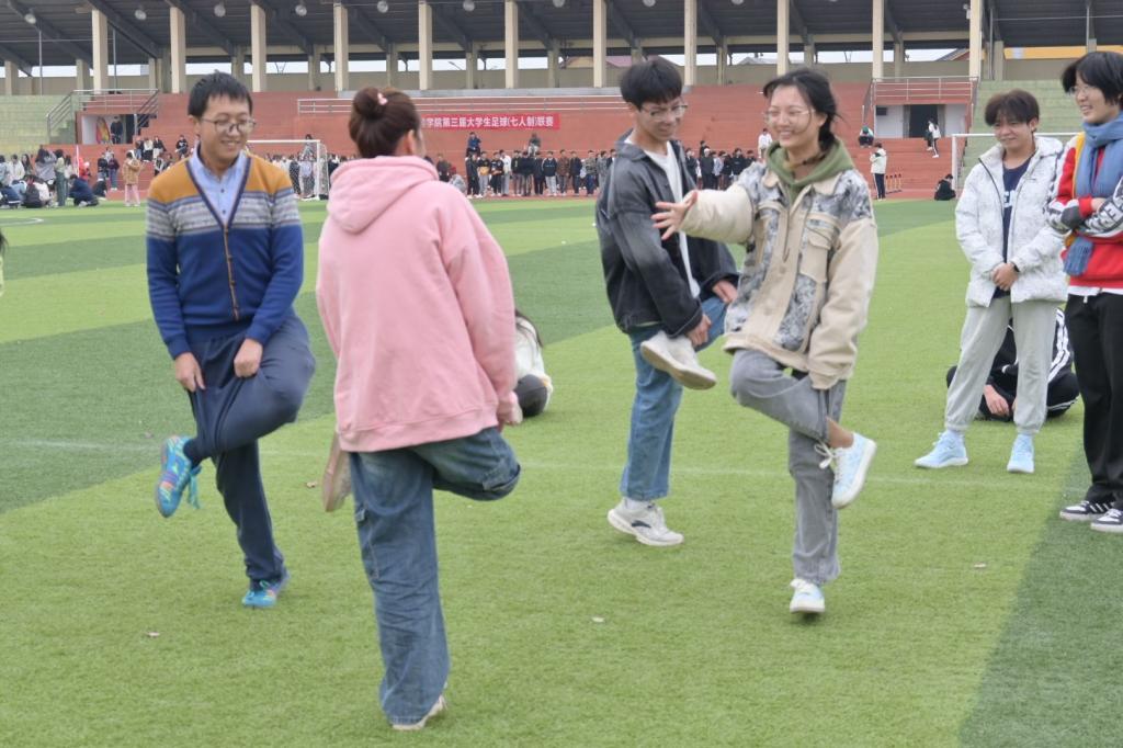 此次活动设置了多个游戏环节,例如“斗鸡”“跳袋接力”“夹乒乓球”“运球接力”“拆桥过河”等,同学们从最初的生疏到逐渐熟络,渐渐融入到集体当中,齐心协力,共同完成挑战。田径场上洋溢着欢声笑语,为校园生活增添了几分青春色彩。