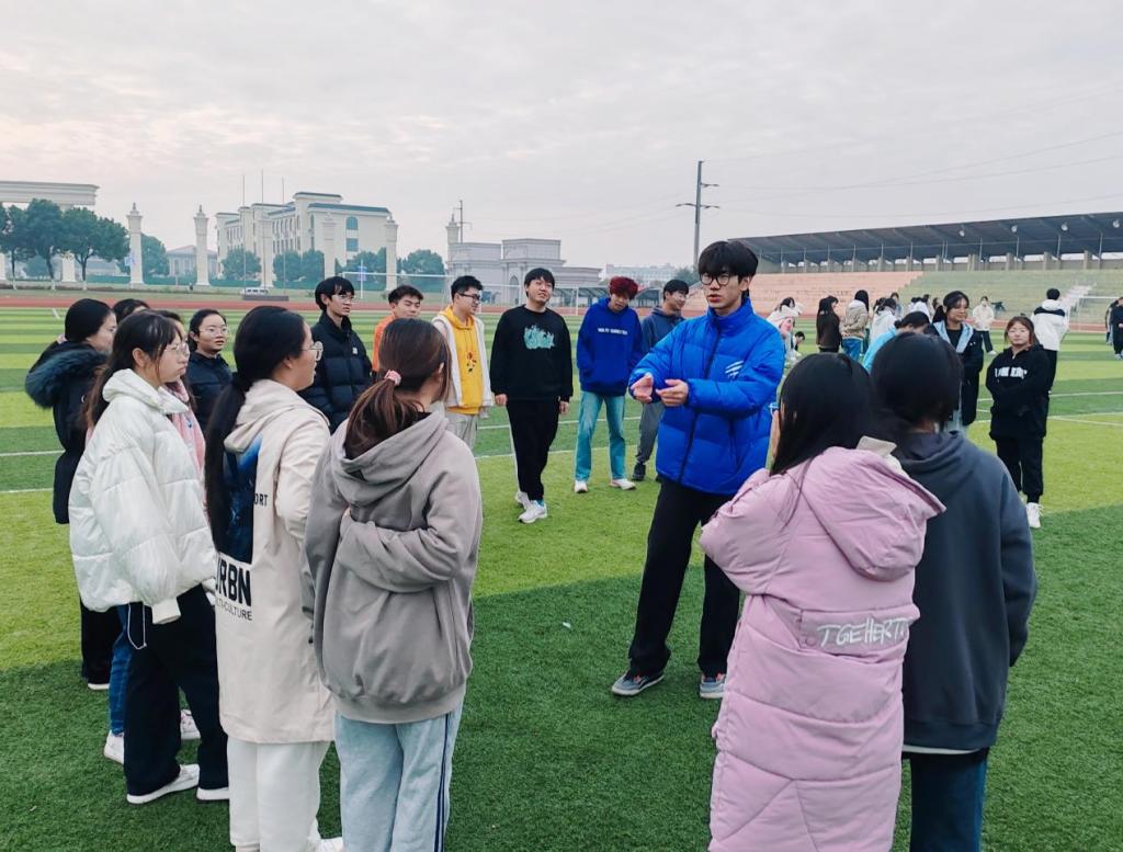 晨跑结束后,由各班级班主任组织学员们进行素质拓展游戏活动。同学们围成圈,手拉手,通过沟通加深了彼此间的相互了解。通过组队游戏,营造了和谐友善的合作氛围,营造了团结友爱的班级氛围。