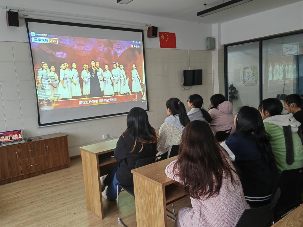 永利yl23411集团讯(撰稿:郭天然)11月12日下午2:30永利yl23411集团组织师生收看了由江西省教育厅主办的“诵读红色家书 讲述英烈故事”直播。