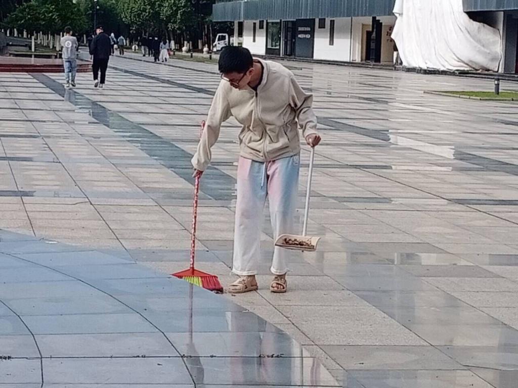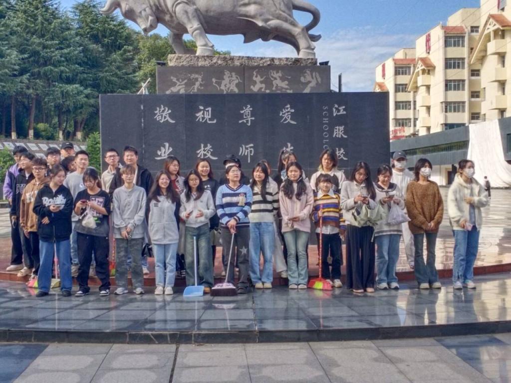 清扫过程中,同学们团结协作,积极主动,不怕脏,不怕累,践行着“奉献、友爱、互助、进步”的志愿者精神,用汗水带给全校师生一个干净整洁的环境。