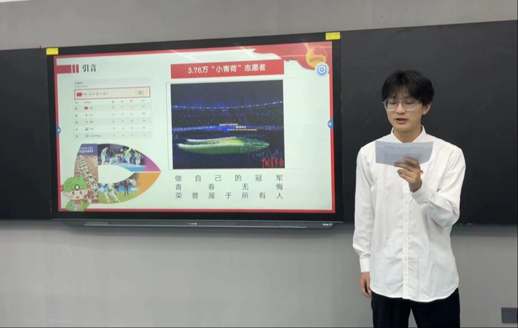 接着,由主持人邓晨曦宣读比赛规则。各参赛团队紧紧围绕本次“微团课”大赛主题,创新授课形式和方法,综合运用PPT、视频、歌曲等丰富多彩的表现形式,从中国精神、爱国主义、致敬时代楷模等方面挖掘“微”主题。选手们激情澎湃,以多内容背景、多角度观察,将理论知识转化为贴近生活、通俗易懂的道理,展现了“微团课”的魅力与教育意义,体现了广大团员青年的责任与担当,彰显了新时代新青年的国家情怀,引领青年大学生书写青春的精彩,绽放青春的光芒。
