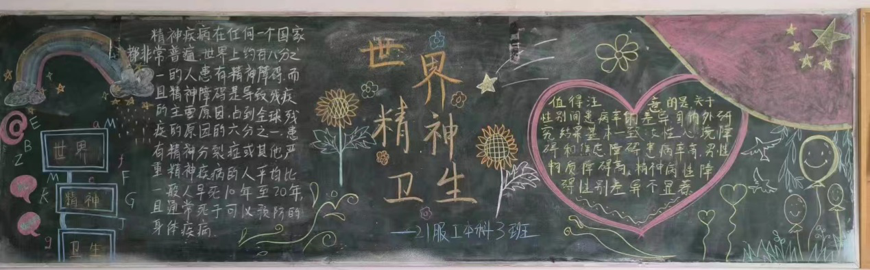精神卫生对每个人来说都非常重要,尤其是在如今快节奏、高压力的社会环境下,关注自己和他人的心理健康显得尤为重要。同学们通过录制视频和刊出黑板报的形式,表达对他人的关心和祝福,使大家感受到团结友爱和支持的力量。