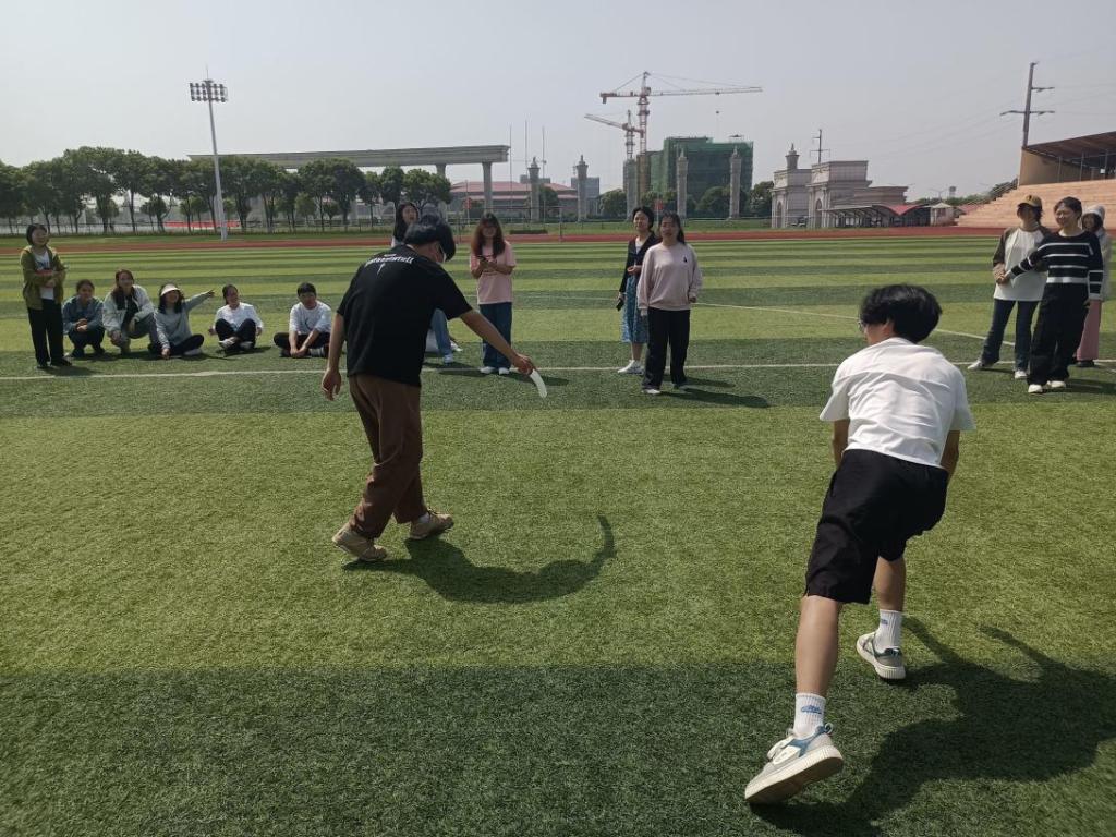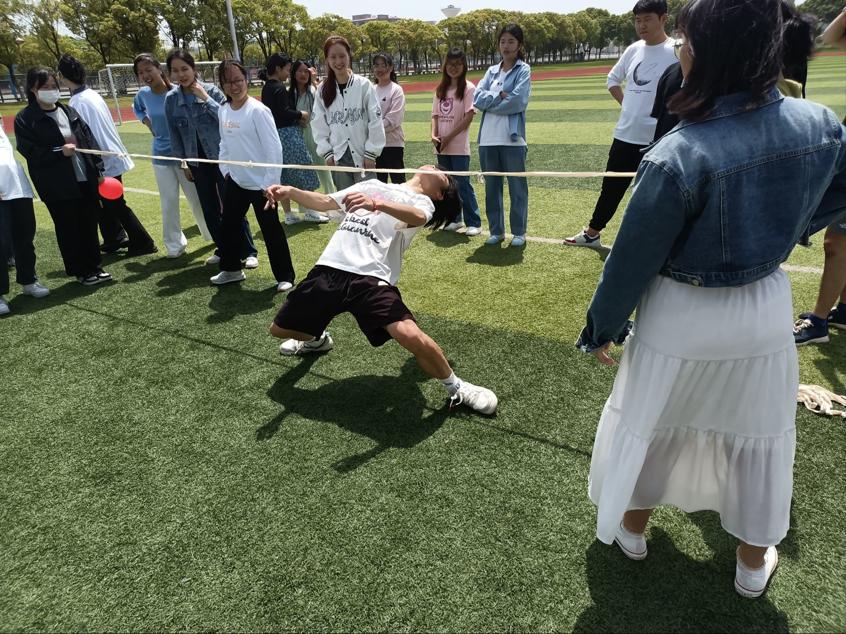 参加活动人员在操场上集合,以自由组队的形式,按照5人为一组进行组队,各小组之间两两对决,活动在参赛选手们的跃跃欲试下就此展开。为了更好地提高同学们的体验感和集体荣誉感,本次活动设有“蒙眼互打”“背夹气球”“镜像翻转”“过绳比赛”等七种游戏项目。比赛如火如荼地进行着,小组成员积极沟通,团结合作,欢声笑语回荡在操场上,同学们在轻松愉悦的氛围下为春意增添了一份欢乐。