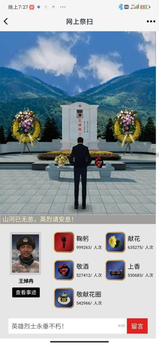 3.返回上一界面,为先烈们敬献花篮,也可以对英雄先烈们说几句真心话。