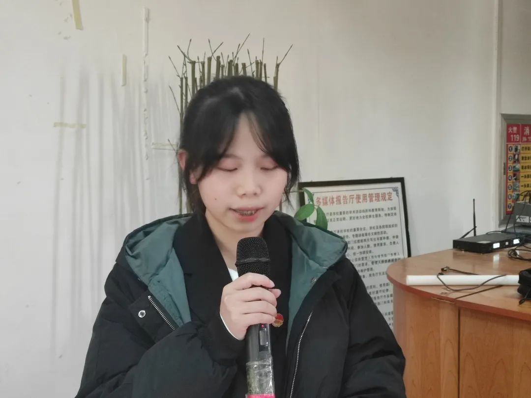 优秀学员代表詹畅上台发言。她讲到,本次青马工程培训帮助服工学子们提高了自身的政治素质,锻炼了工作能力,树立了责任感和使命感。她表示将在今后的大学生活努力成长,积极向上,给青春注射热血,以青春逐梦未来。