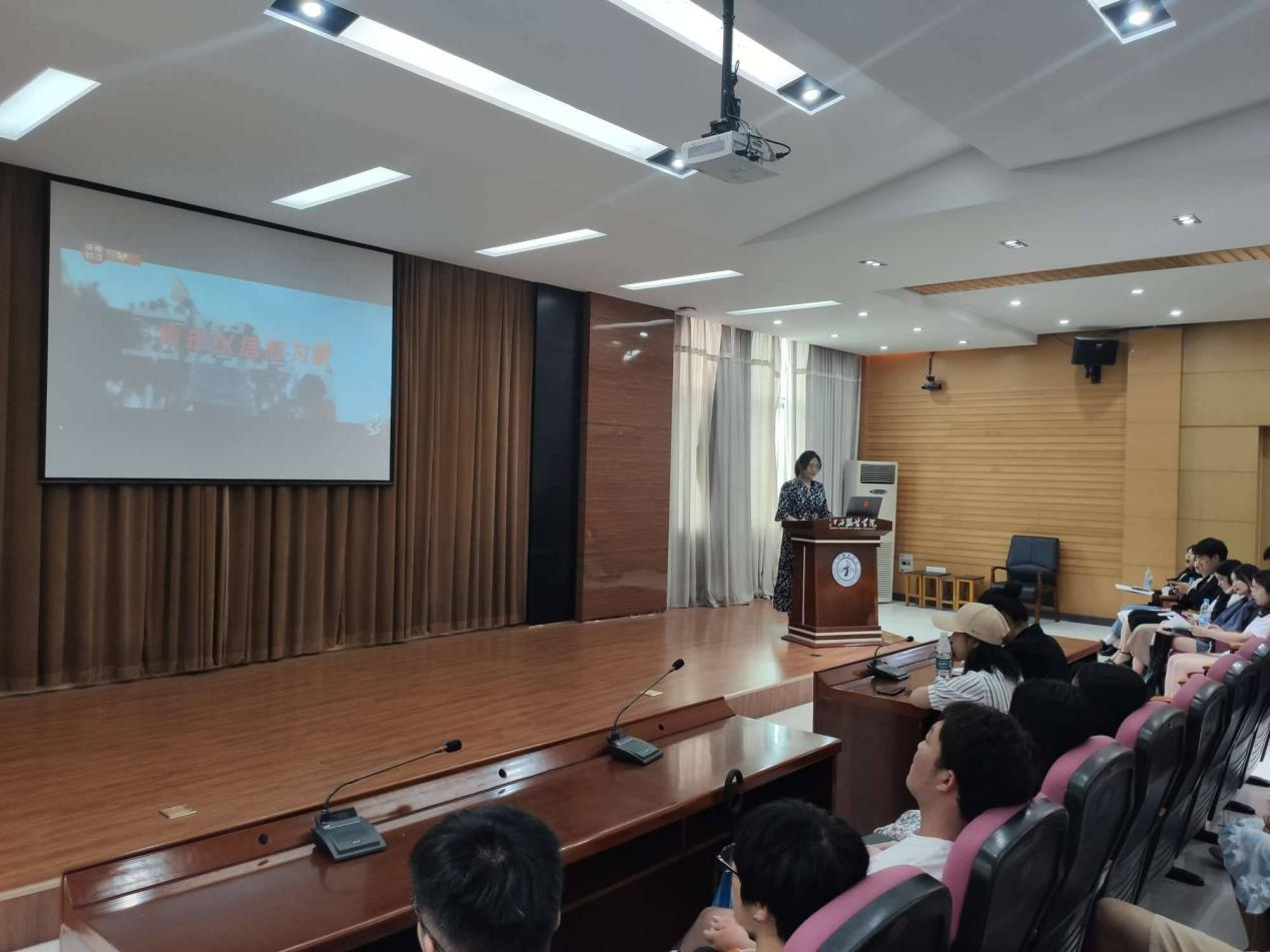 活动伊始,全体师生共同观看视频《青春中国,吾辈当歌》。该视频讲述了在中国近代百年历史长河中,热血青年弘扬“五四精神”,以信仰为歌,以奉献为歌,以奋斗为歌,投身于中华民族伟大复兴的进程,建设祖国大好山河。观看视频过后,李静雯老师强调,作为肩负党和国家建设重任,承担为民服务之责的新时代青年学子,我们要勇于做扛起新时代奋进旗帜的后浪,在学习“四史”中汲取奋进力量,为推动实现伟大复兴中国梦的新征程再添助力、共铸辉煌!