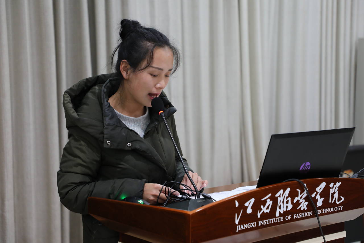 19服装现代工程专科3班班主任仇新枝作为班主任代表进行发言。她向同学们宣传了我院服装设计与工程专业入选2020年度国家一流本科专业建设点的喜讯,号召同学要通过大学的学习锻炼实现自我突破,在学习上做好详细的规划,培养研究和解决问题的能力。她希望同学们具备勤奋、谦虚的求学精神,以创建优良学风为己任,积极参与到学风建设中来,严格要求自己,做一名德智体美劳全面发展的大学生。
