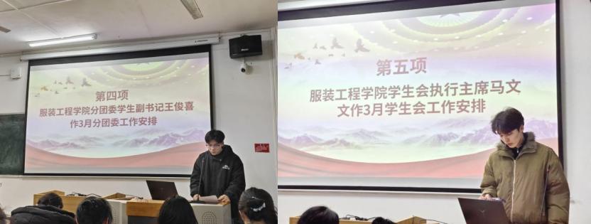 大会第四项,由永利yl23411集团分团委学生副书记王俊喜和学生会执行主席马文文分别作3月份团委工作安排和3月学生会工作安排。
