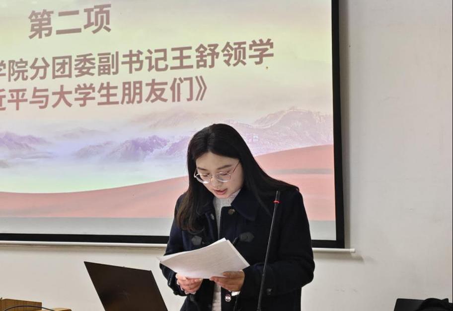 大会第二项,由永利yl23411集团分团委副书记王舒领学《习近平与大学生朋友们》第一、二卷节选内容。通过学习,同学们深深感受到了习近平总书记对青年成长的关怀与期望,明白了广大青年应肩负的历史使命,深刻理解和把握了时代潮流和国家需要,立志要以聪明才智贡献国家,以开拓进取服务社会。广大青年要肩负历史使命,坚定前进信心,立大志、明大德、成大才、担大任,努力成为堪当民族复兴重任的时代新人,让青春在为祖国、为民族、为人民、为人类的不懈奋斗中绽放绚丽之花。