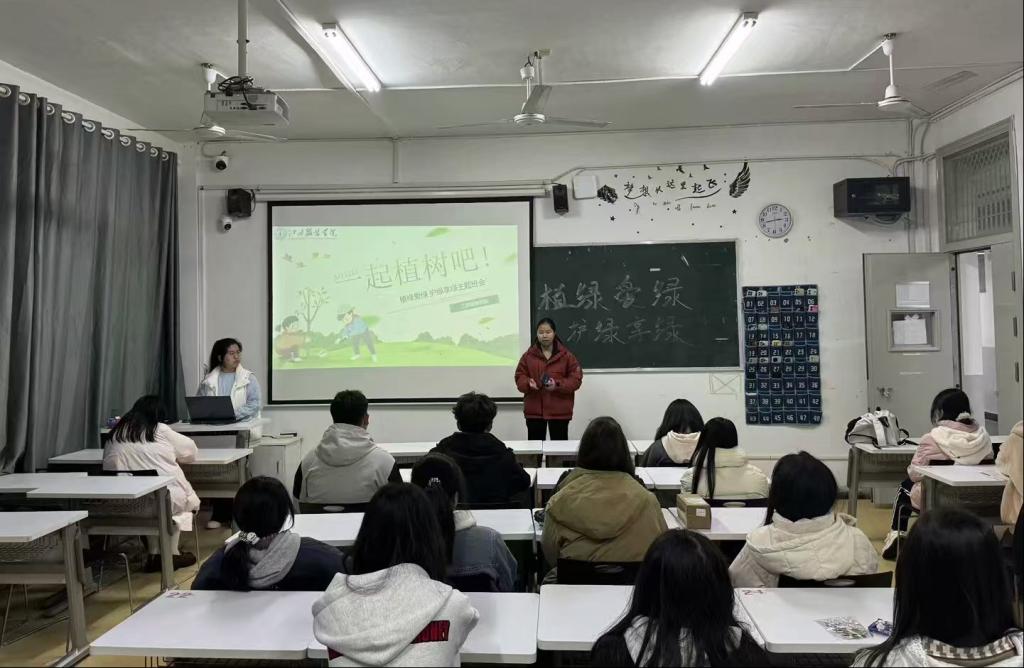 24级各班班会主题为“植绿爱绿,护绿享绿”。班会上,班长通过向大家介绍“3.12植树节”的由来、“一棵树的价值”、森林覆盖率下降、气候变化加剧等问题,使同学们深刻认识到保护环境的重要性。通过此次班会,同学们不仅加深了对绿色生活的理解,也纷纷表示将以实际行动守护绿水青山,共创美好未来。